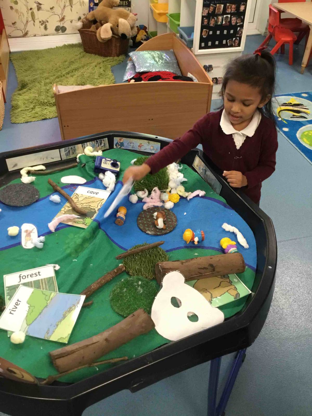 Our topic is 'All about me' and they have been busy painting their own self-portraits, learning about similarities and differences between us, and enjoying looking at the lovely family photos in our home corner and talking about our families. Please can we remind you to bring in a family photo if you haven't yet, as the children really do like looking at these. In a couple of weeks we will be moving on to our Autumn/Bears topic.