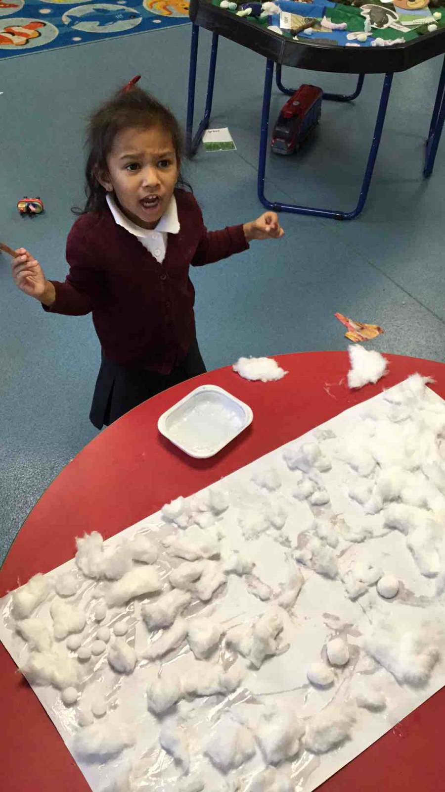 What a fantastic start to Nursery all the children have had! We are so proud of them for how well they have settled in and learnt our routines. Over this half term our topics have included, 'All about me', and, 'Bears/Autumn'. We have read some lovely stories linking in with these topics, such as 'We're going on a bear hunt', 'Goldilocks and the three bears' and 'Owl babies', where the children have listened carefully and attempted to ask questions all about the main events and the characters.Through these topics the children have enjoyed a variety of expressive art and design activities, such as creating each of the scenes from Bear Hunt, experimenting with different resources such as cotton wool, mud, paint, tissue paper and pastels. They all created an Autumn hand print tree which look lovely on our Nursery display! Our bear topic also ended with a Teddy Bears picnic with parents in the hall and the children really enjoyed engaging in the activities, such as decorating a biscuit, bear yoga, making a bear mask and joining in with parachute games. Thankyou so much to parents/Grandparents who came along.
