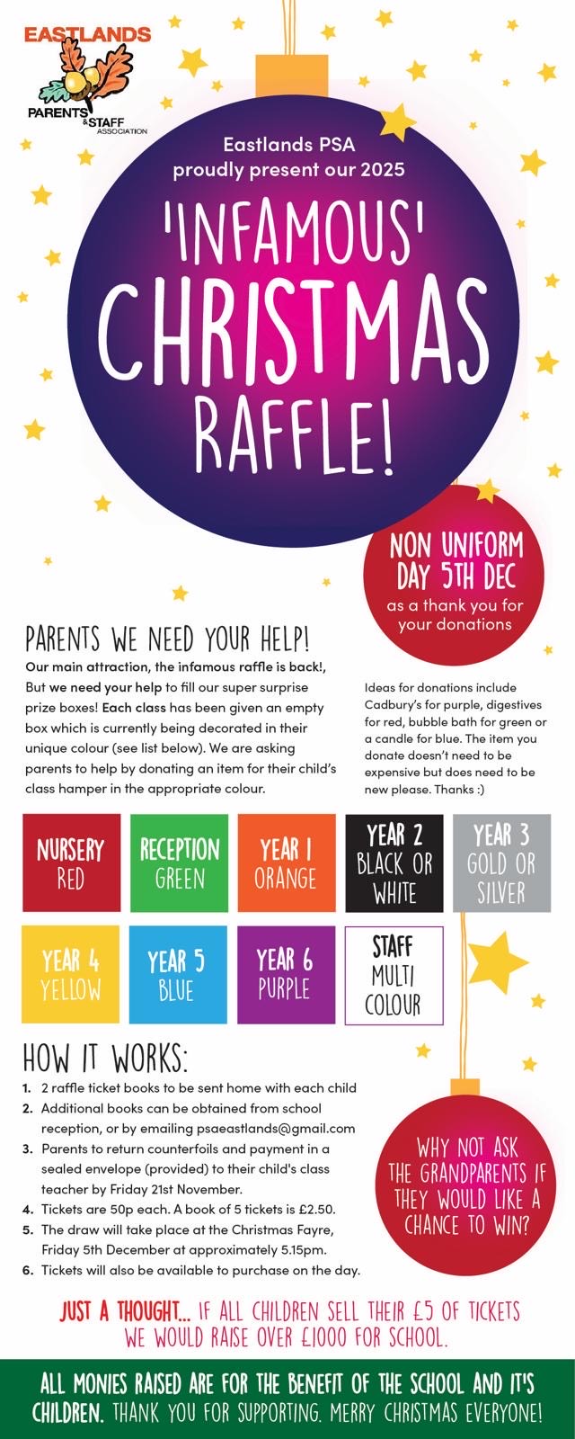 The 5th of December is non uniform day in exchange for a Christmas raffle item. For more information, click on the link to enlarge the poster.