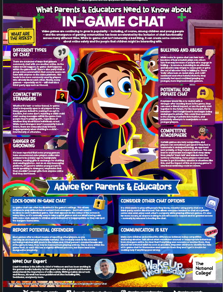 Wake Up Wednesday is a weekly campaign by National College for Online Safety that provides free online resources, guides, and courses for parents, carers, and educators. Each week we will add different information to support Online Safety, Keeping Safe and Wellbeing. Come back next Wednesday!