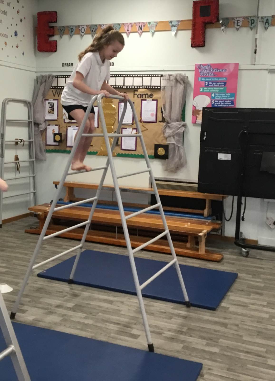 Elephants enjoyed a great P.E. Lesson using the gym equipment. They were using control, balance and different movements across the equipment.