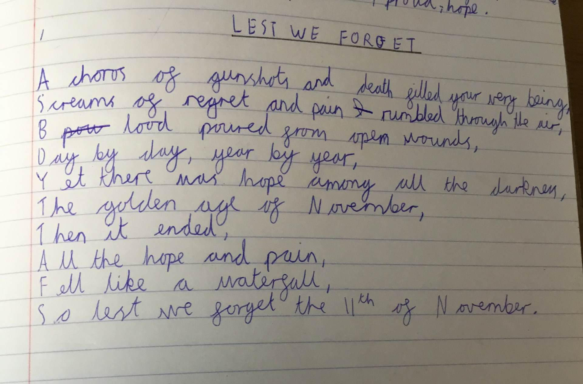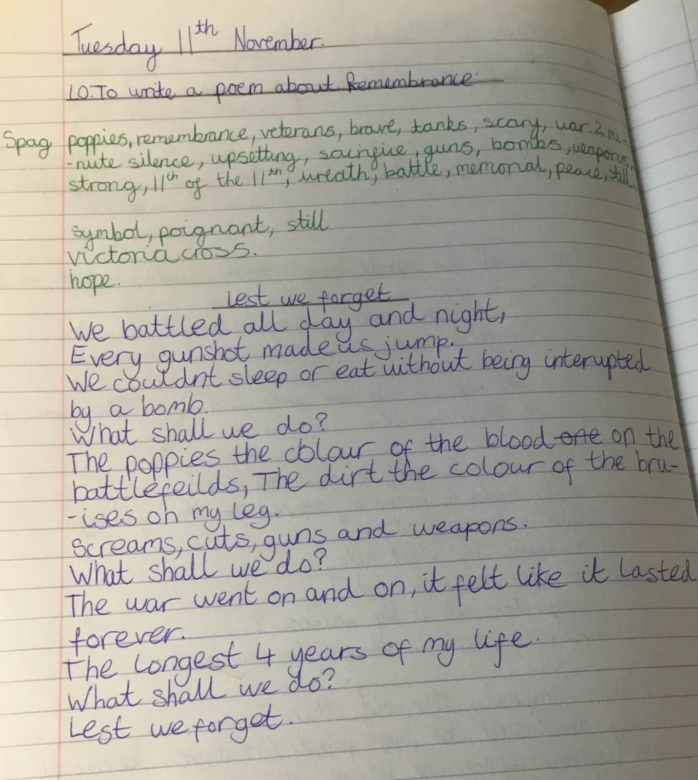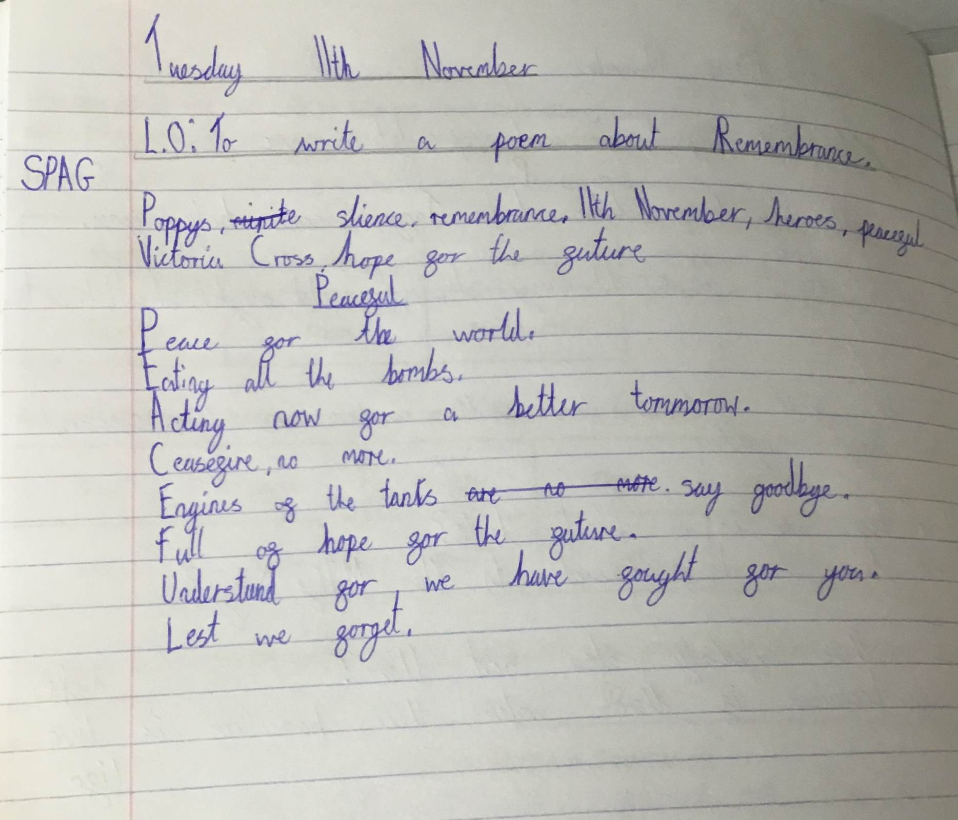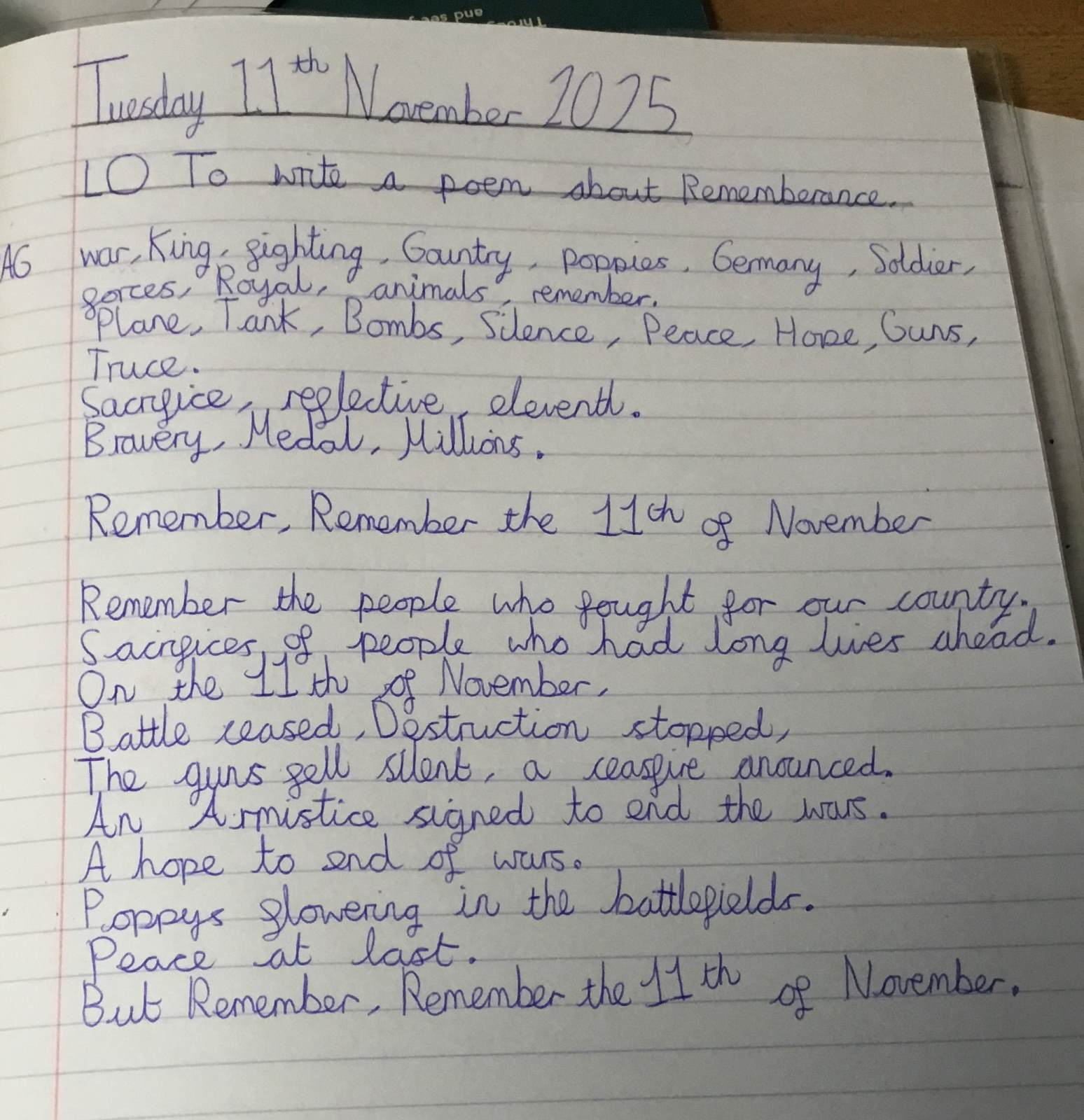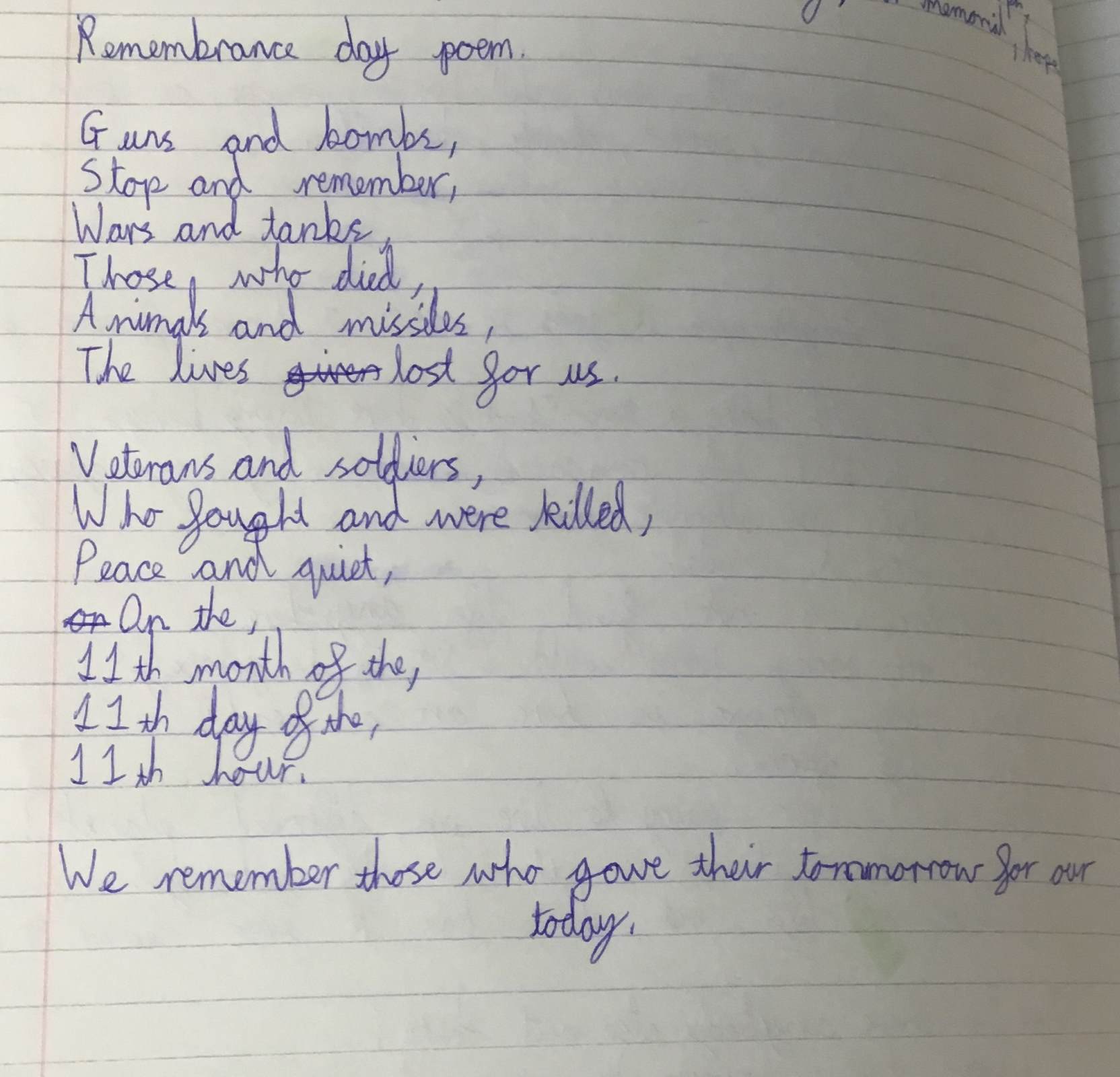 Today as a school, we took part in Remembrance. At 11am, we were silent to remember. We wrote poems, please have a look at our learning.