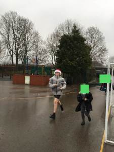 On a very wet afternoon, we took part in the National Santa Dash! The Santa Dash is all about having fun while being active. We jogged or walked around the school, even Warwick Bear, our Road Safety Mascot, got involved. A great time was had by everyone.