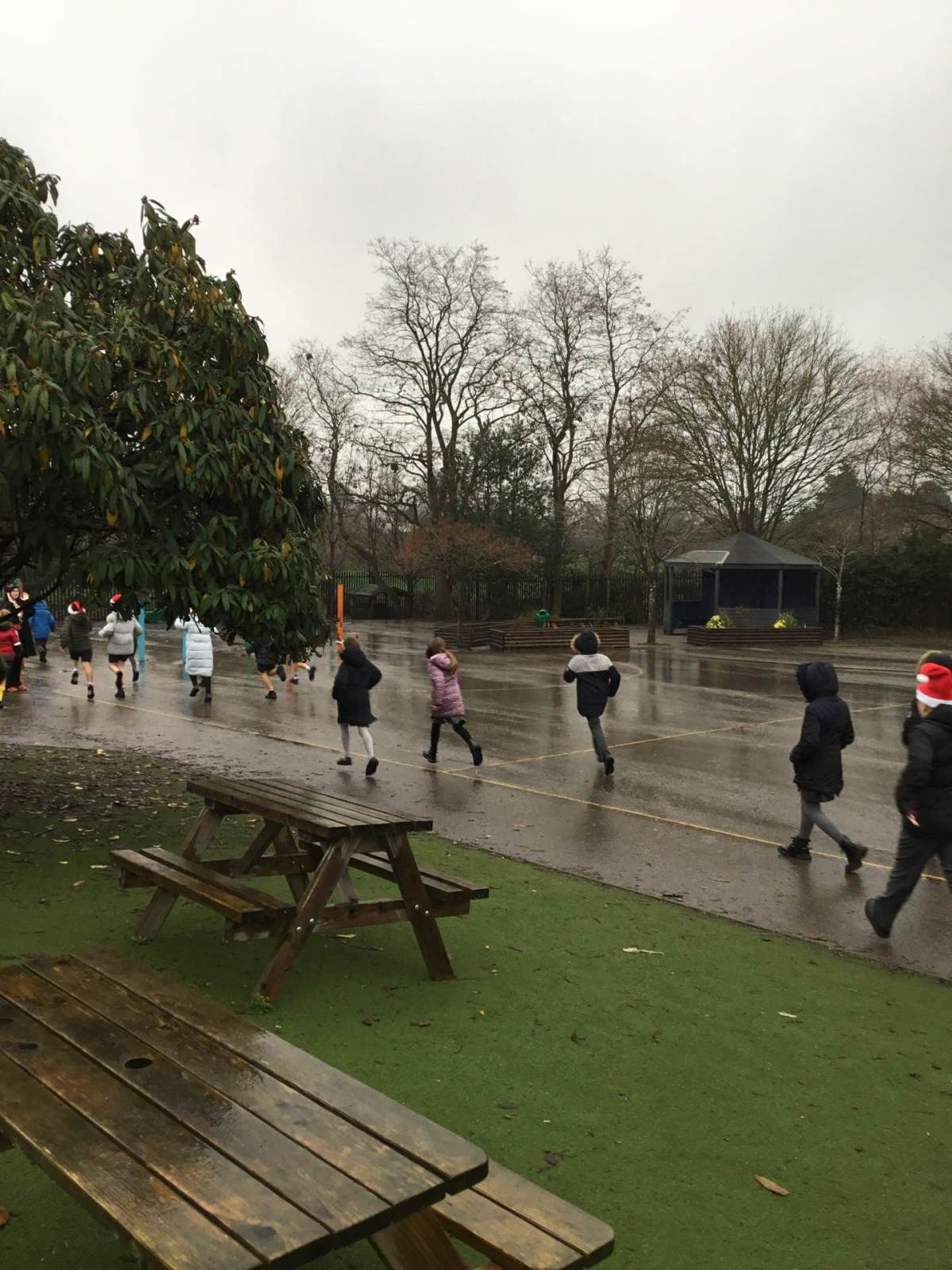 On a very wet afternoon, we took part in the National Santa Dash! The Santa Dash is all about having fun while being active. We jogged or walked around the school, even Warwick Bear, our Road Safety Mascot, got involved. A great time was had by everyone.